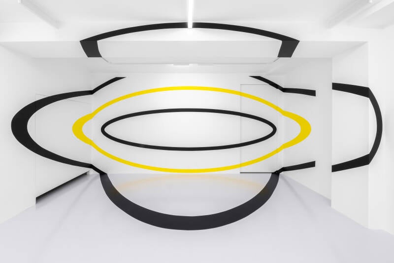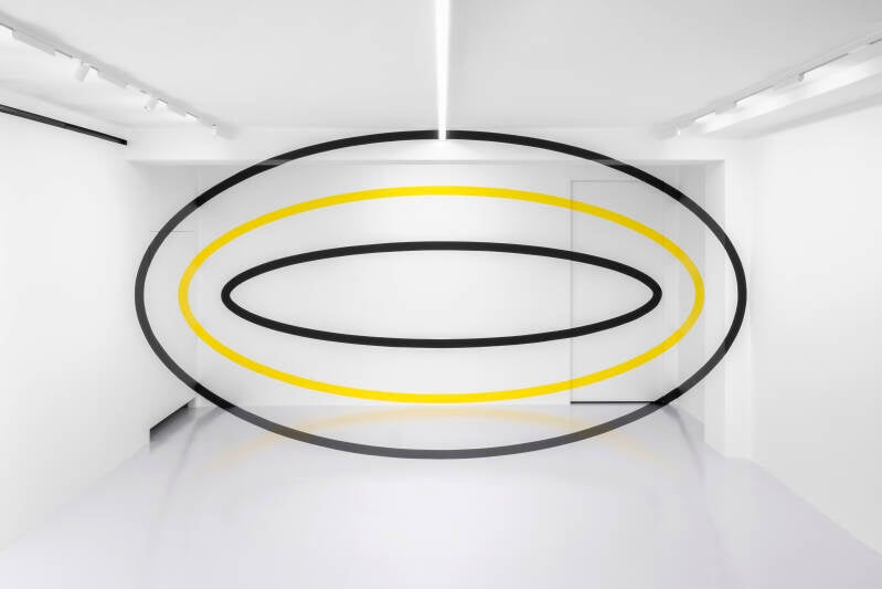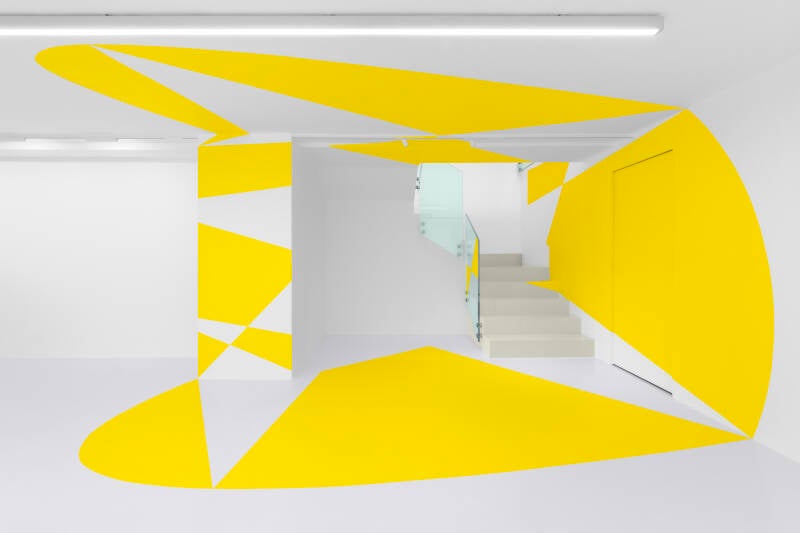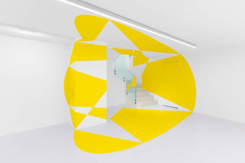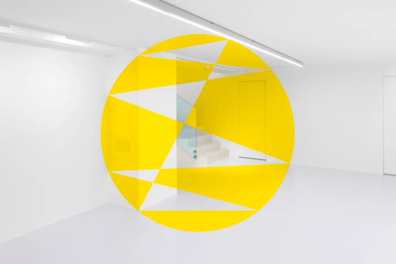 Felice Varini, Rosso, giallo e giallo/nero, Galleria 10 A.M. ART, Milano, photo by Mattia Mognetti