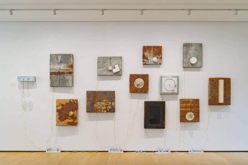 Shlomo Harush, 32.000 Titles, 2011, acciaio e tessere della biblioteca del Brooklyn Museum of Art, 79 x 63,5 x 38 cm