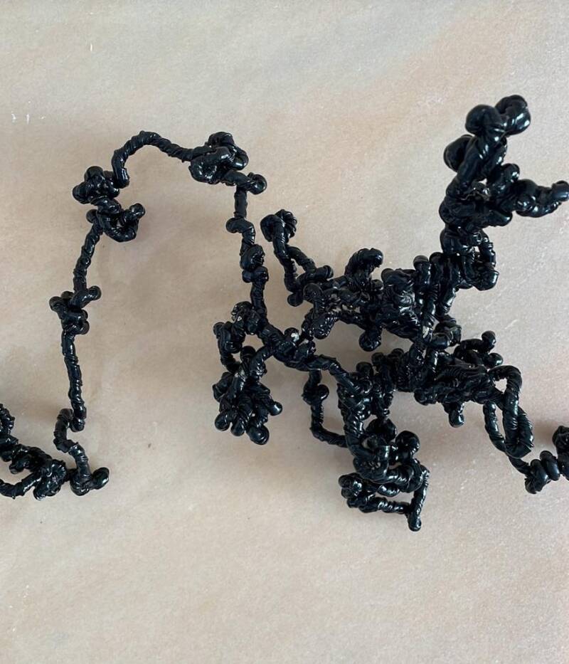 Luca De Angelo, Scarabocchio n. 35, cavo elettrico e spray nero lucido , dimensione variabile