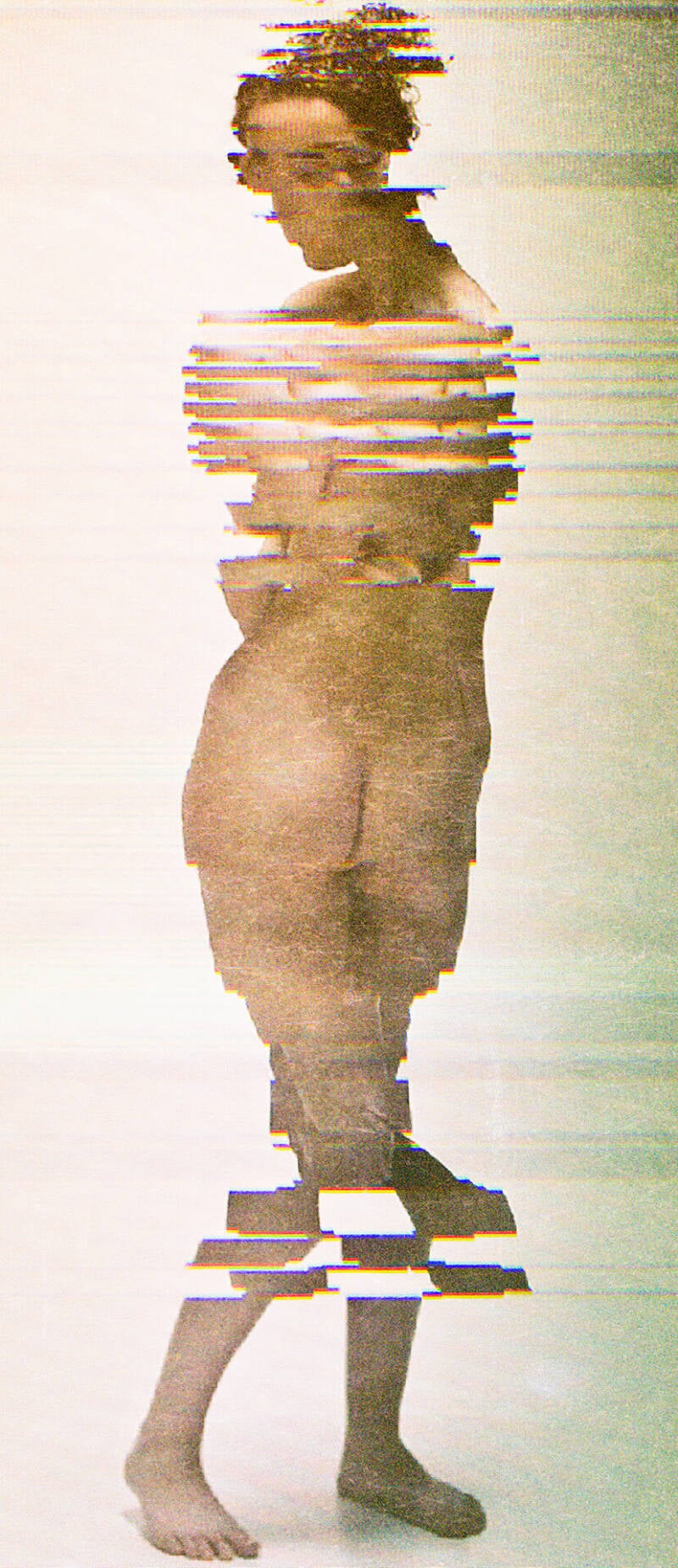 Anche nelle scansioni di Aparicio torna l’elemento della luce, che proviene dallo scanner utilizzato per la realizzazione delle opere esposte. Tuttavia, la presenza della luminosità in questo caso rappresenta l’opposto delle teorie di Barthes: come lo stesso Aparicio descrive, la luce generata dalle scansioni digitalizza la concretezza del corpo, circoscrivendola in un codice binario di pixel e informazioni digitali.