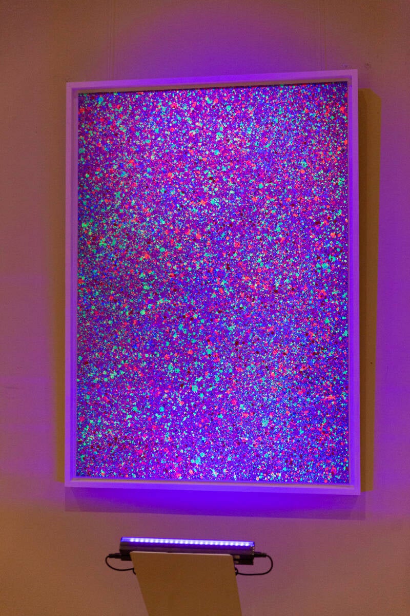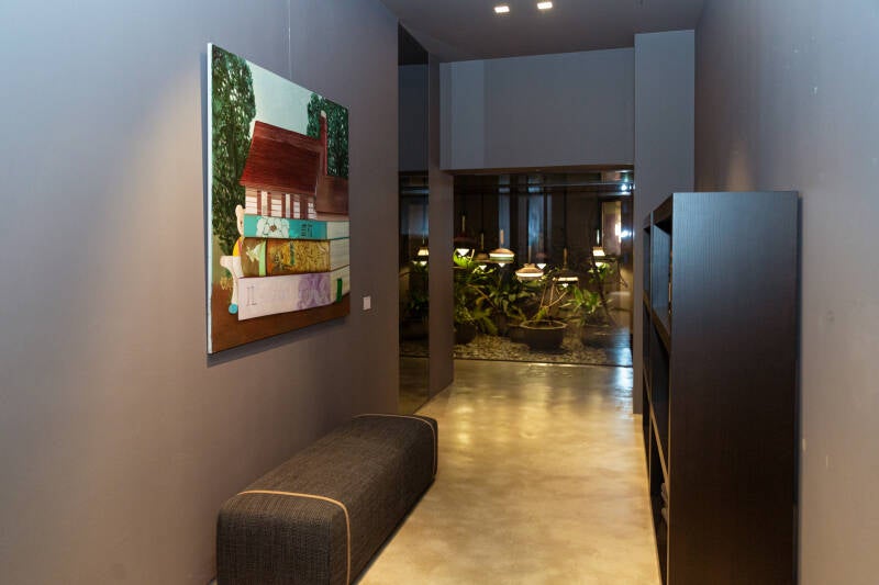 Al di là del design e della tecnologia, l’arte è il terzo elemento che completa l’esperienza di visita di questa location alternativa e assai suggestiva, grazie alla mostra collettiva 1 a 1 Affinità a cura di Anna Kessler e Anna Niutta. L’obiettivo principale della curatela e dell’allestimento di 1 a 1 Affinità è quello di uscire dalla comfort zone per eccellenza dell’arte contemporanea, ovvero il white cube. Lo spazio espositivo, in questo caso, diventa un ambiente vivo, intimo e personale, in cui le opere allestite si mettono in dialogo con l’ambiente circostante, arricchendo l’esperienza di visita.