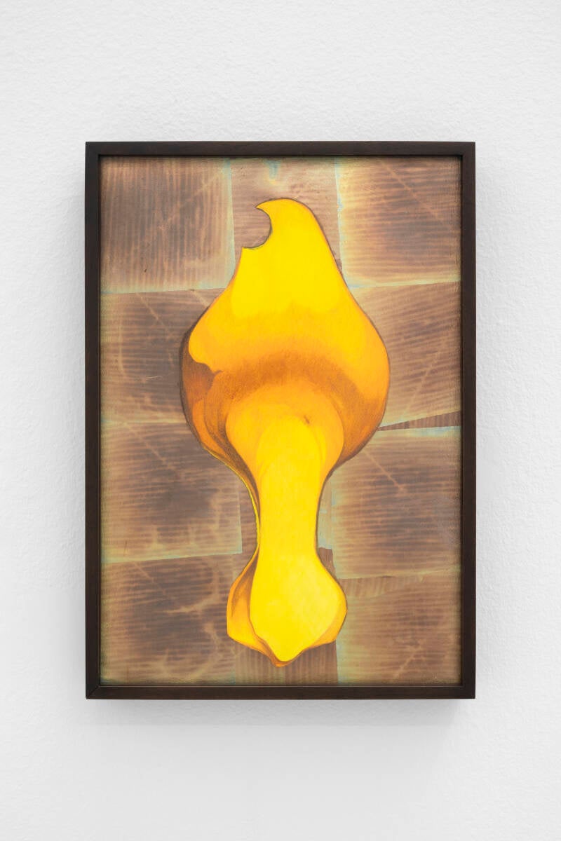 Giovanni Kronenberg, Senza titolo, 2023, matite colorate e foglia di rame su carta, 36,5 x 25,5 cm. Courtesy l’artista e Renata Fabbri, Milano 2024. Foto: Mattia Mognetti.