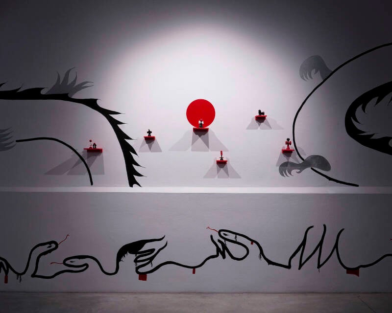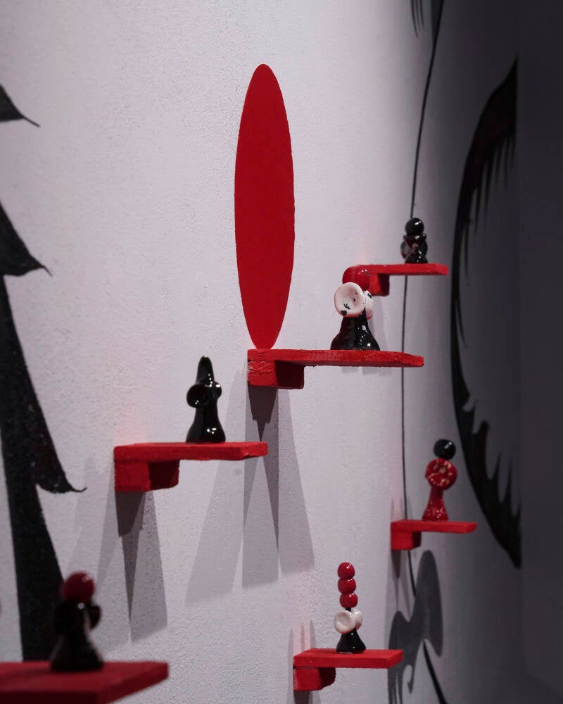 Attraverso un'immersione nel mondo artistico di Gou presso lo spazio espositivo N51 con la mostra CATCH! the red ball, gli spettatori vengono trasportati in un viaggio straordinario sulla schiena di un Drago, anche in riferimento al Capodanno cinese. Infatti, secondo il calendario lunare, con il 2024 entriamo nell’anno del Drago, 龙. Uno dei progetti più emblematici di Gou è Fragile Kendama Angels dove l’artista reinventa i tradizionali giocattoli folcloristici orientali come il kendama, trasformandoli in delicate sculture in ceramica. Questa reinterpretazione crea un contrasto sorprendente tra la solidità intrinseca del giocattolo e la fragilità della ceramica, spingendo gli osservatori a riflettere sulla natura transitoria della vita e delle emozioni umane.