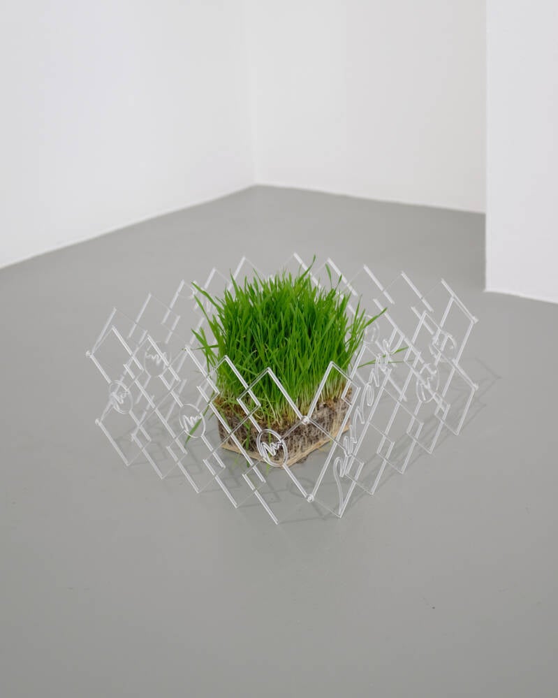 Stefano Perrone, The grass is greener, 2024, plexiglass, catnip, cm 17.6x33x33. Courtesy of the artist and RIBOT gallery