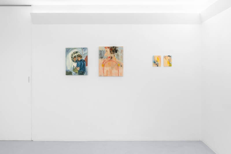 Il linguaggio creativo dell'opera di Westerlind cattura l'essenza dell'intimità umana, ritraendo corpi carichi dell’intensità di pennellate di pittura materica, quasi come si volesse uscire dalla dimensione piatta della pittura per comunicare con una rappresentazione più tridimensionale e scultorea. Dall'altra parte, Rocchegiani parte da mondi interiori con una traslazione sulla tela che oscilla tra il riconoscibile e l'astratto. Il segno e la pennellata di Rocheggiani contrastano con la matericità di Westerlind: l’atmosfera che si crea è più sfocata, quasi per richiamare ricordi e foto analogiche scolorite dal tempo, in cui le macchie di colore cominciano a corrodere la pellicola. Queste differenze di approccio non solo delineano le singole specificità dei due artisti, ma anche offrono un terreno fertile per una reciproca ispirazione e comprensione.