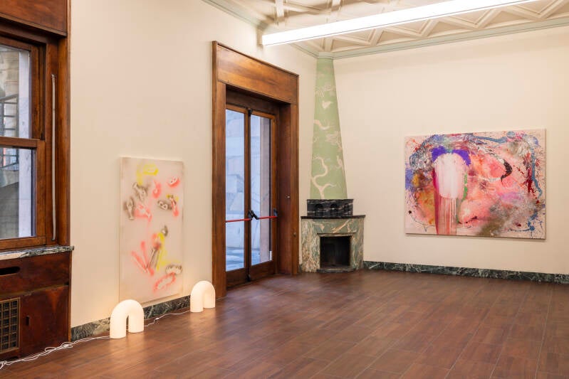 Installation view John Armleder, On ne fait pas ça, MASSIMODECARLO. Photo by: Roberto Marossi. Courtesy: MASSIMODECARLO
