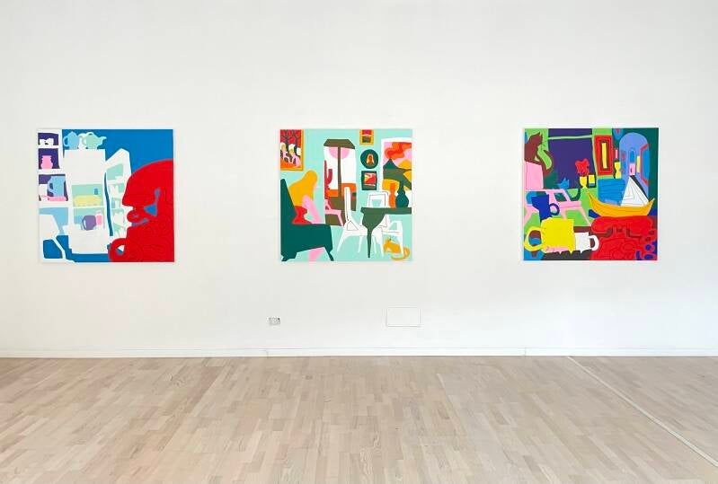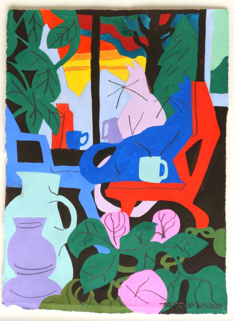 Al centro dell'universo creativo di Todd James troviamo una costante riflessione sui temi della quotidianità e della familiarità. Tazze da caffè, piante d'appartamento, posaceneri e telefoni analogici diventano totem domestici, simboli di un mondo familiare che si trasforma sotto lo sguardo attento dell'artista. Il gioco delle sedie, ricorrente tema della mostra, rappresenta un invito a esplorare il concetto di cambiamento e trasformazione, di movimento e adattamento.