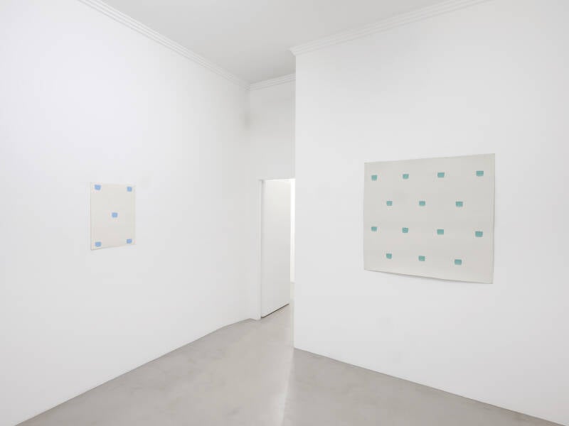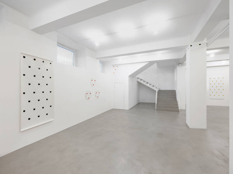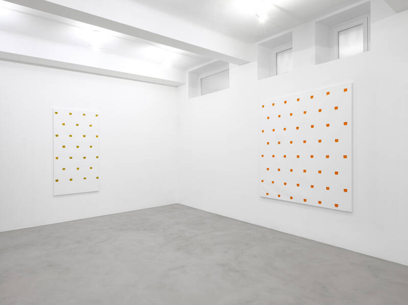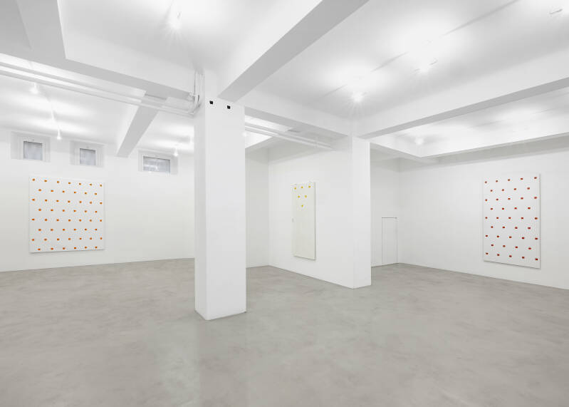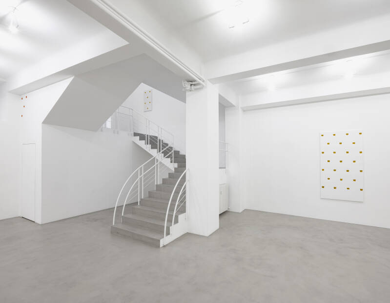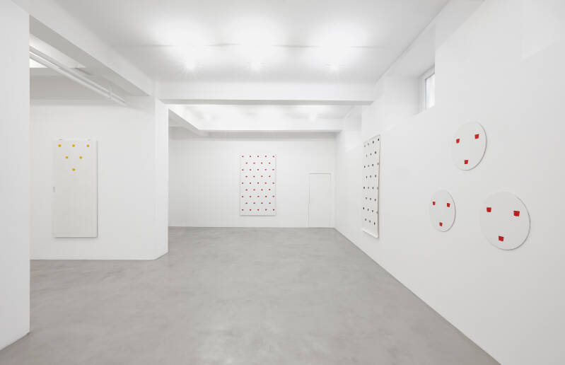 Veduta parziale della mostra Niele Toroni. Impronte di pennello n. 50 A arte Invernizzi, Milano, 2024