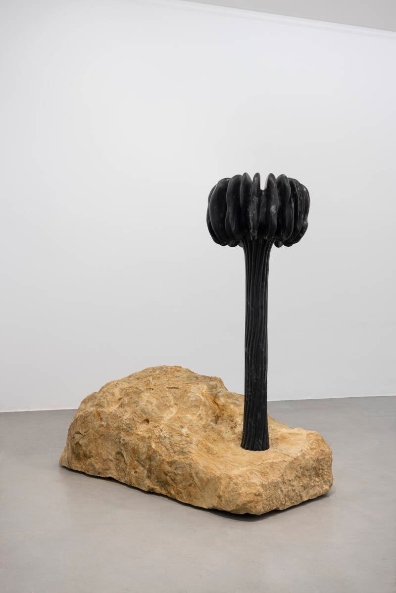 Elena Damiani, Black Crested Saguaro, 2024, Hand carved black Santa Ana marble, Tuscan Arenaria base, 148×58×58 cm