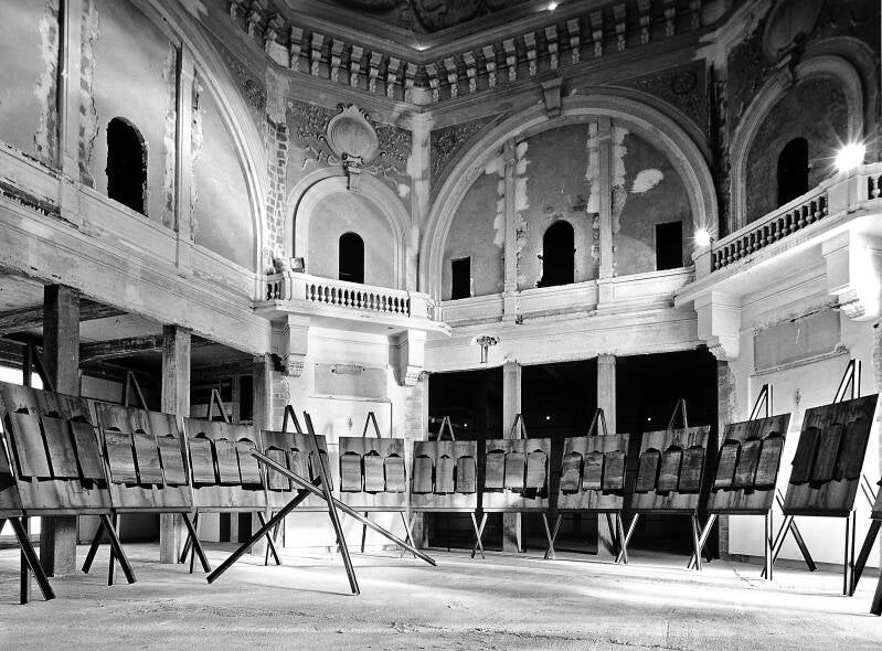Veduta della mostra Jannis Kounellis a Bari, a cura di Annamaria Maggi e Vito Labarile, Teatro Margherita, Bari, 2010. Foto Manolis Babousis. Courtesy Galleria Fumagalli