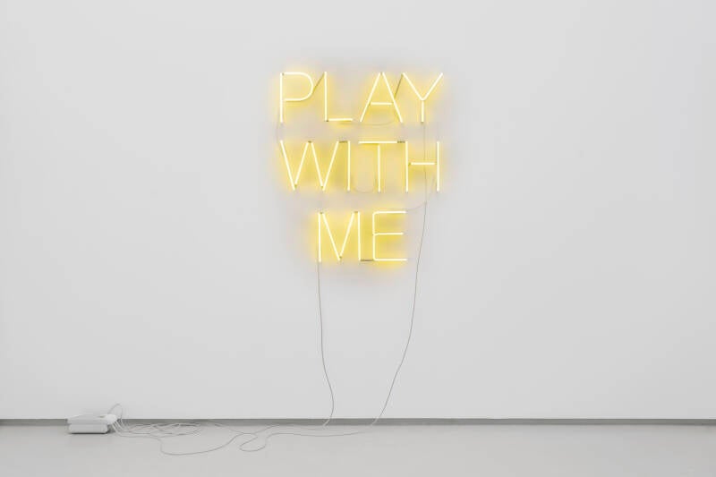 Poi c’è quel neon, PLAY WITH ME. Nel testo viene descritto come un “mantra perverso” che confonde seduzione e sottomissione: mentre lo leggo lo sento quasi rivolto a me, come un messaggio che conosco troppo bene.