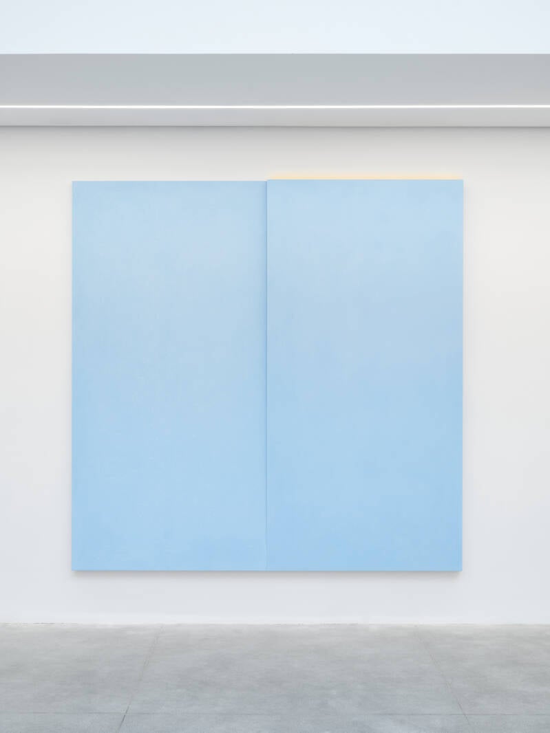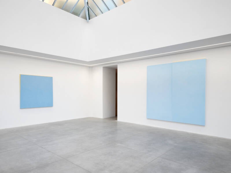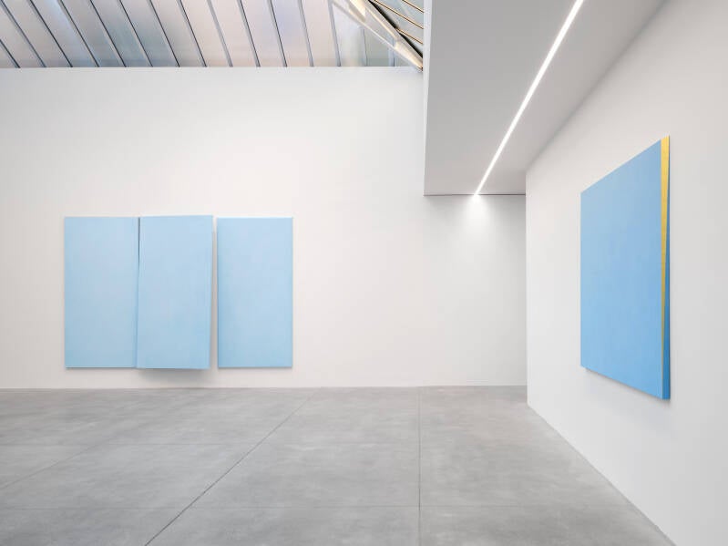 Ettore Spalletti, Trittico azzurro, 2013. Color impasto on board, gold-silver paste, pencil, cm 240 x 360
