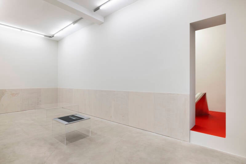 “Back Facing Front” di Thea Djordjadze si configura come un ambiente instabile in cui forma, funzione e percezione restano in costante sospensione. Attraverso una pratica installativa che mette in tensione architettura e oggetti, l’artista costruisce una situazione in cui le opere non si offrono come entità definite, ma come possibilità aperte. Strutture che evocano dispositivi espositivi o elementi funzionali si sottraggono a una lettura univoca, oscillando tra presenza e dissoluzione. In questo spazio, lo sguardo è chiamato a rinegoziare continuamente il proprio orientamento, confrontandosi con una materialità che conserva tracce di contatto e resistenza. Più che produrre significati stabili, la mostra attiva una condizione percettiva in cui il senso resta provvisorio, rimandato, mai completamente risolto.