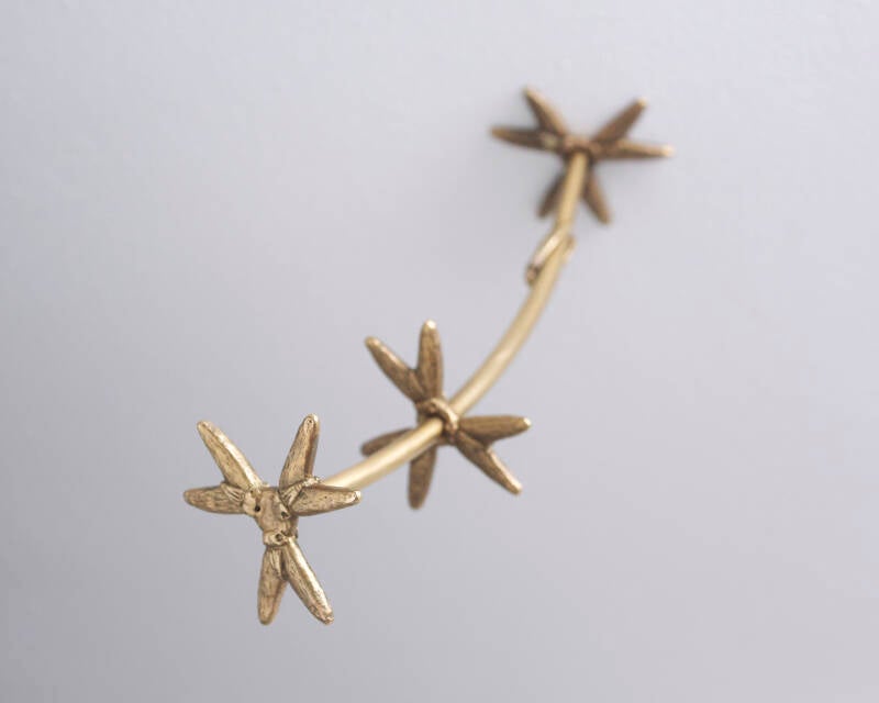 Accanto a questa dimensione cosmica, le mosche — o ciò che inizialmente appare come tale — aprono un altro livello di riflessione. Disposte in sequenza, trasformate in una sorta di costellazione, perdono progressivamente la loro identità entomologica. Qui il lavoro sembra intercettare un meccanismo fondamentale della percezione: la tendenza a connettere punti, a costruire figure, a imporre ordine. Il riconoscimento avviene e subito si incrina, lasciando spazio a una visione instabile, continuamente rinegoziata.